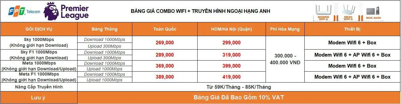 – Gói Combo Ngoại Hạng Anh chỉ từ 269.000đ/Tháng